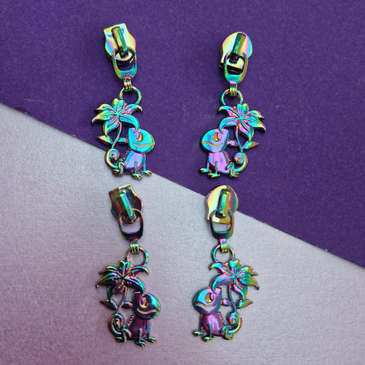 Floral Chameleon shaped silver or rainbow #5 zipper pull