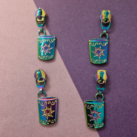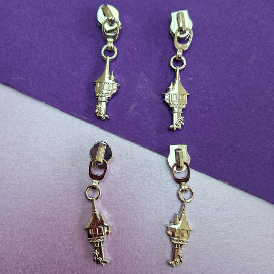 Floral Tower shaped silver or rainbow #5 zipper pull