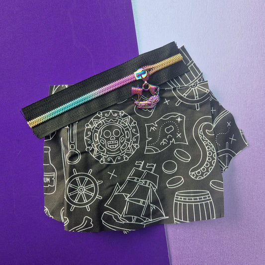 Rum Pirates black background 100% cotton fabric - fat quarter or metre
