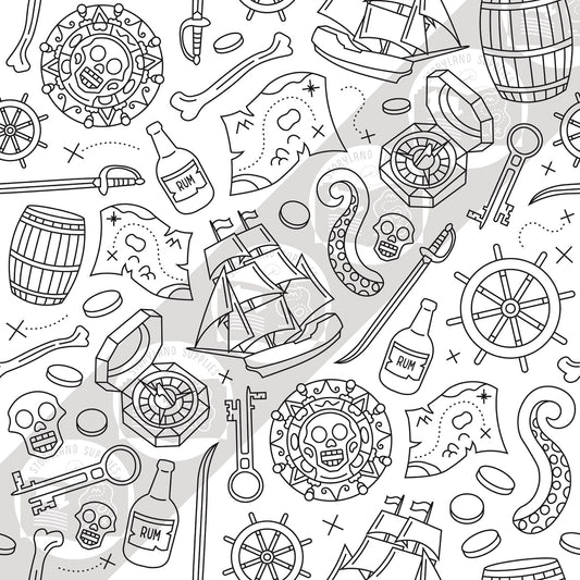 Rum Pirates white background 100% cotton fabric - fat quarter or metre